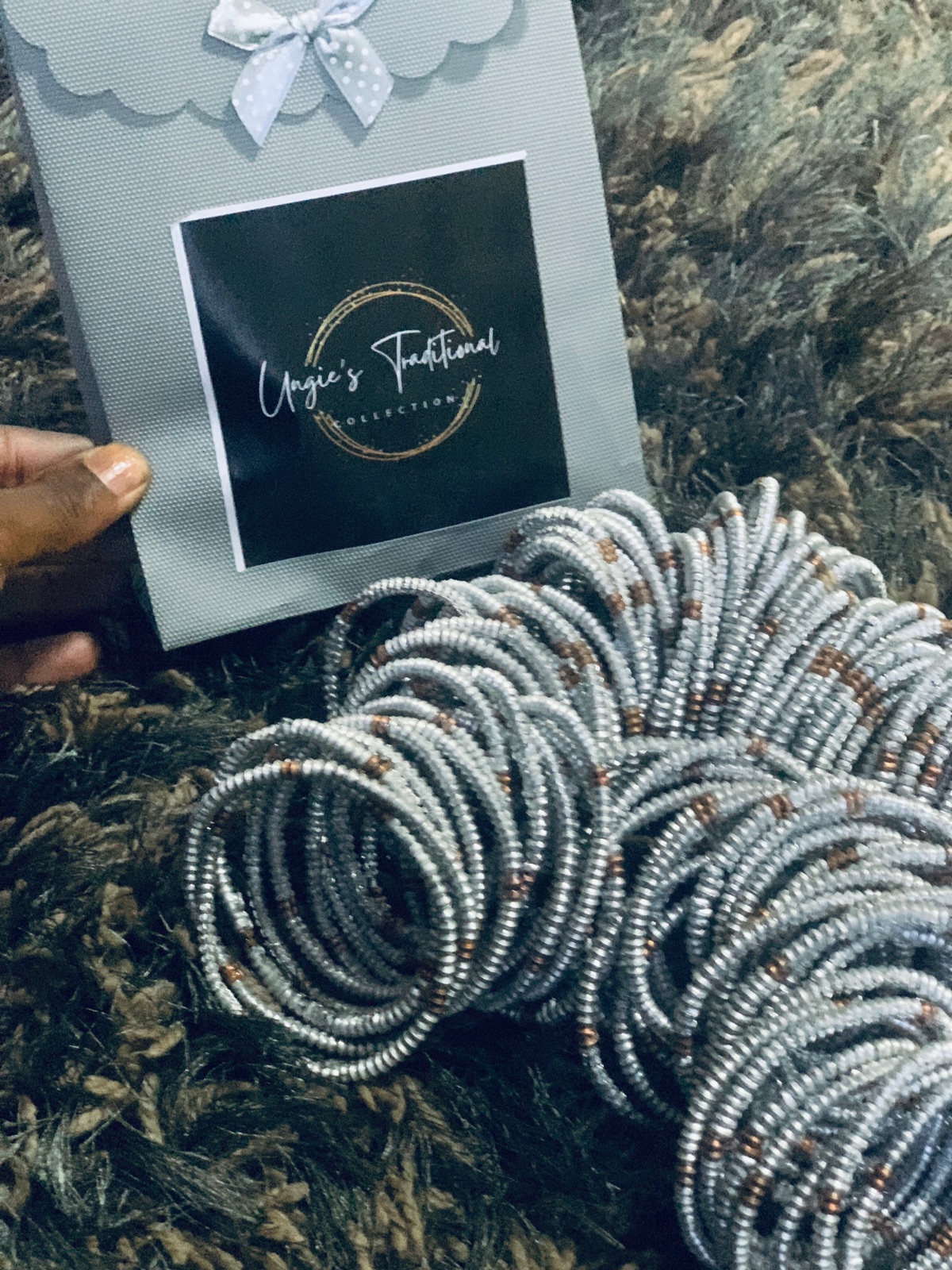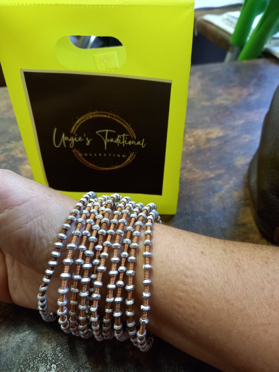 Traditional Venda bracelets adorned with beautiful cobbles, adding elegance and cultural authenticity to your attire.